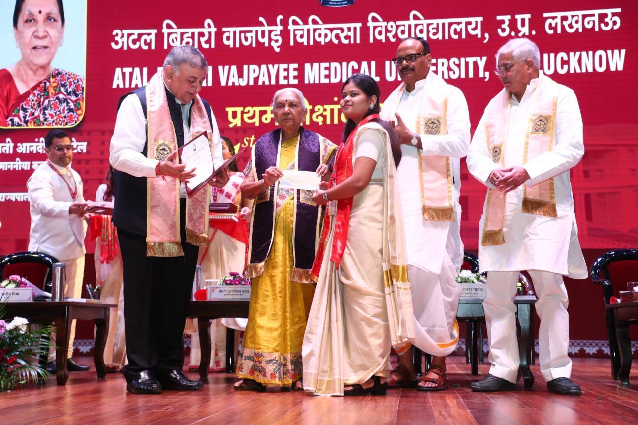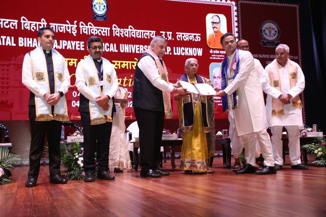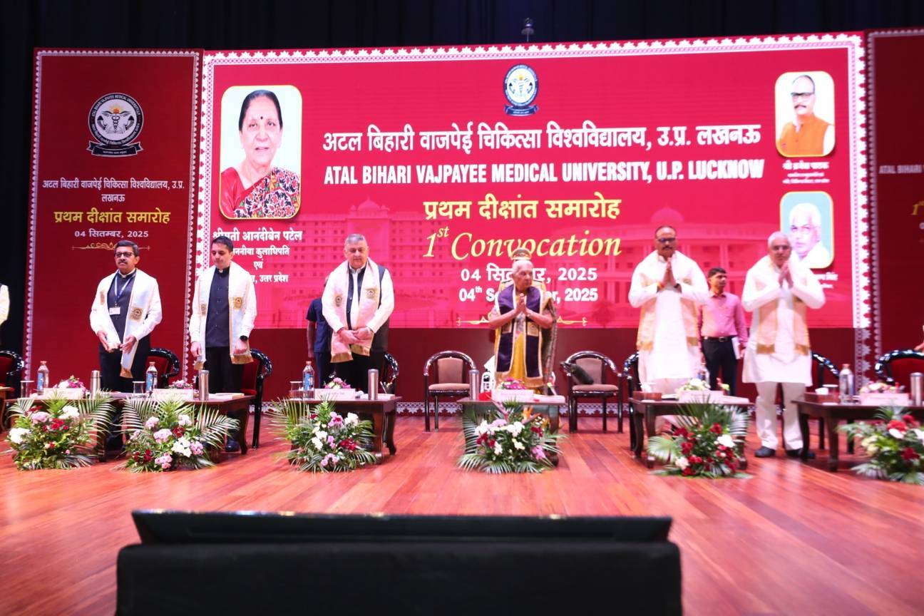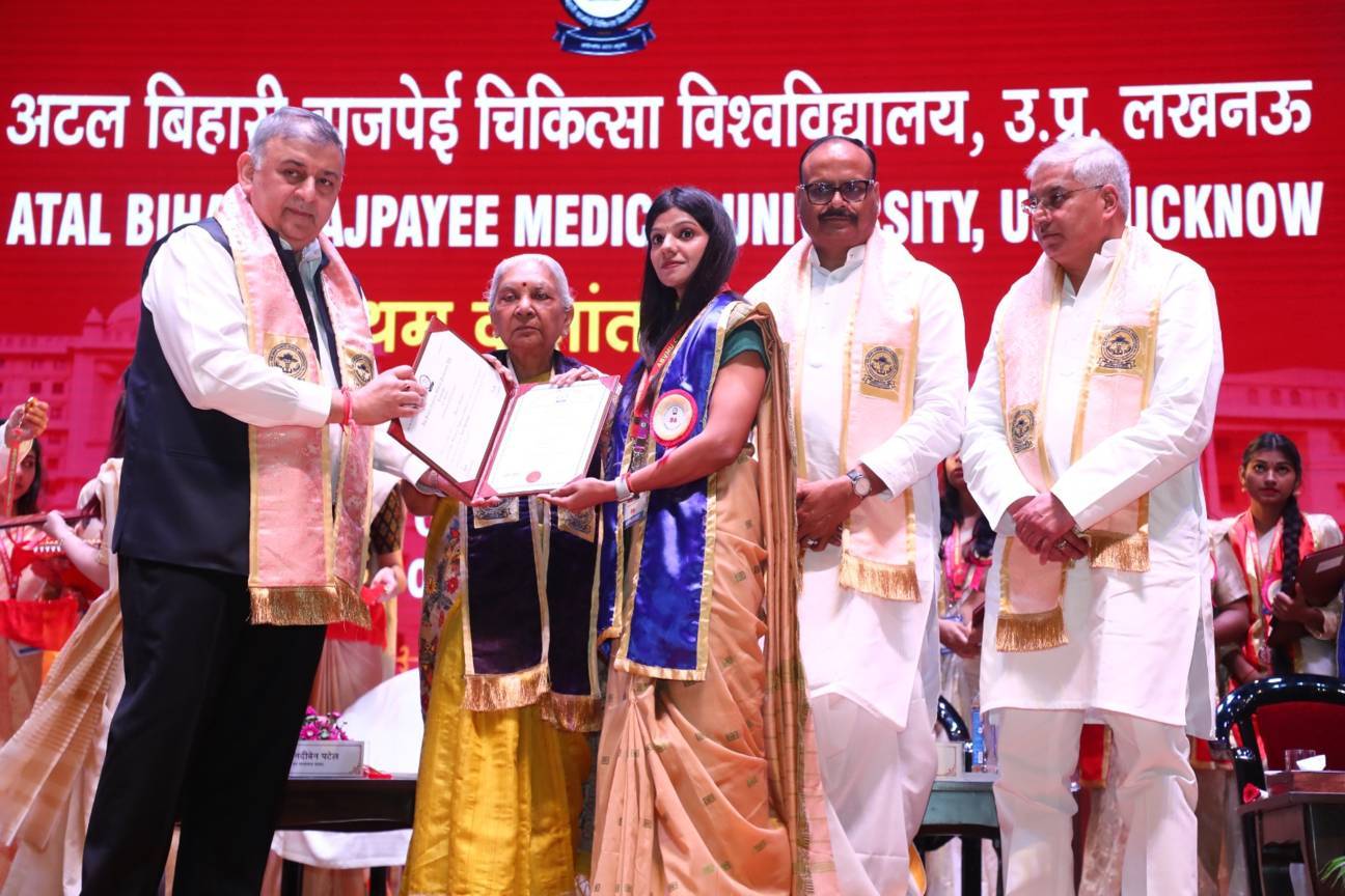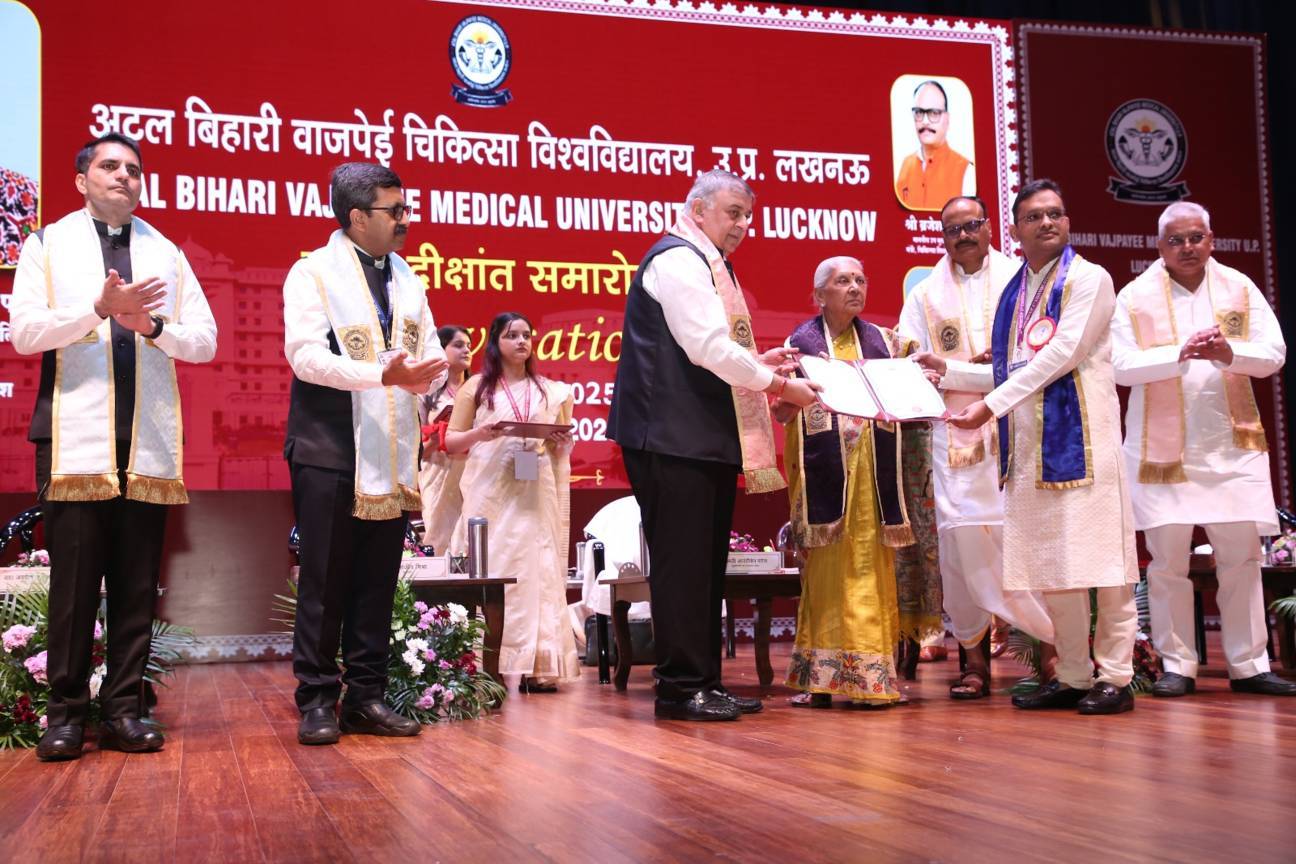 1st Convocation of Atal Bihari Medical University, UP, Lucknow, was held on 4th September, 2025 at the auditorium of University. The convocation was presided over and blessed by Hon'ble Chancellor and Governor of Uttar Pradesh, Smt. Anandiben Patel ji. Hon'ble Deputy Chief Minister and cabinet minister Medical Education Sri. Brajesh Pathak ji, was Chief Guest and State Minister, Medical Education Sri Mayankeshwar Sharan Singh was the Guest of Honour. 74 Gold and Silver medals and 8526 degrees were awarded to students of Nursing, Dental, Medical and Paramedical disciplines at the convocation.