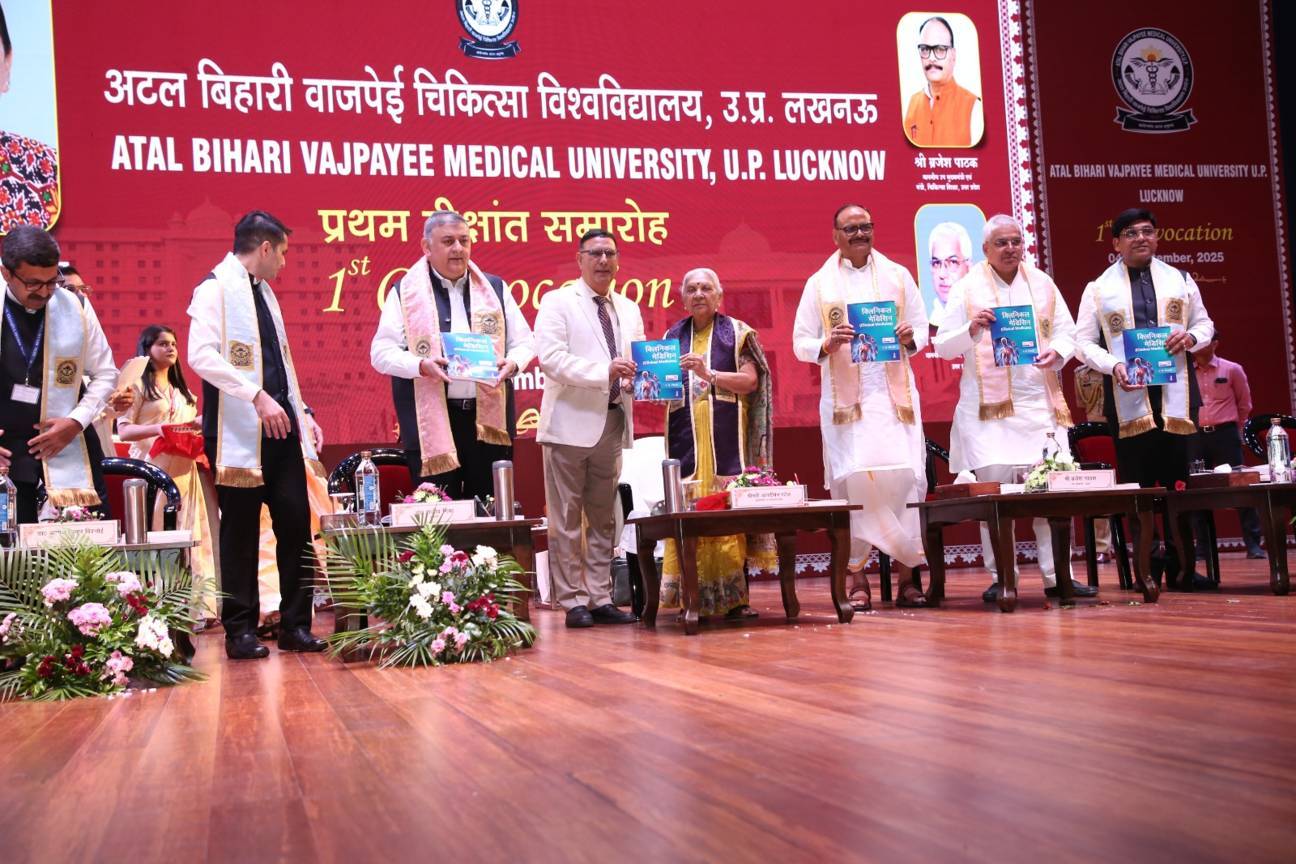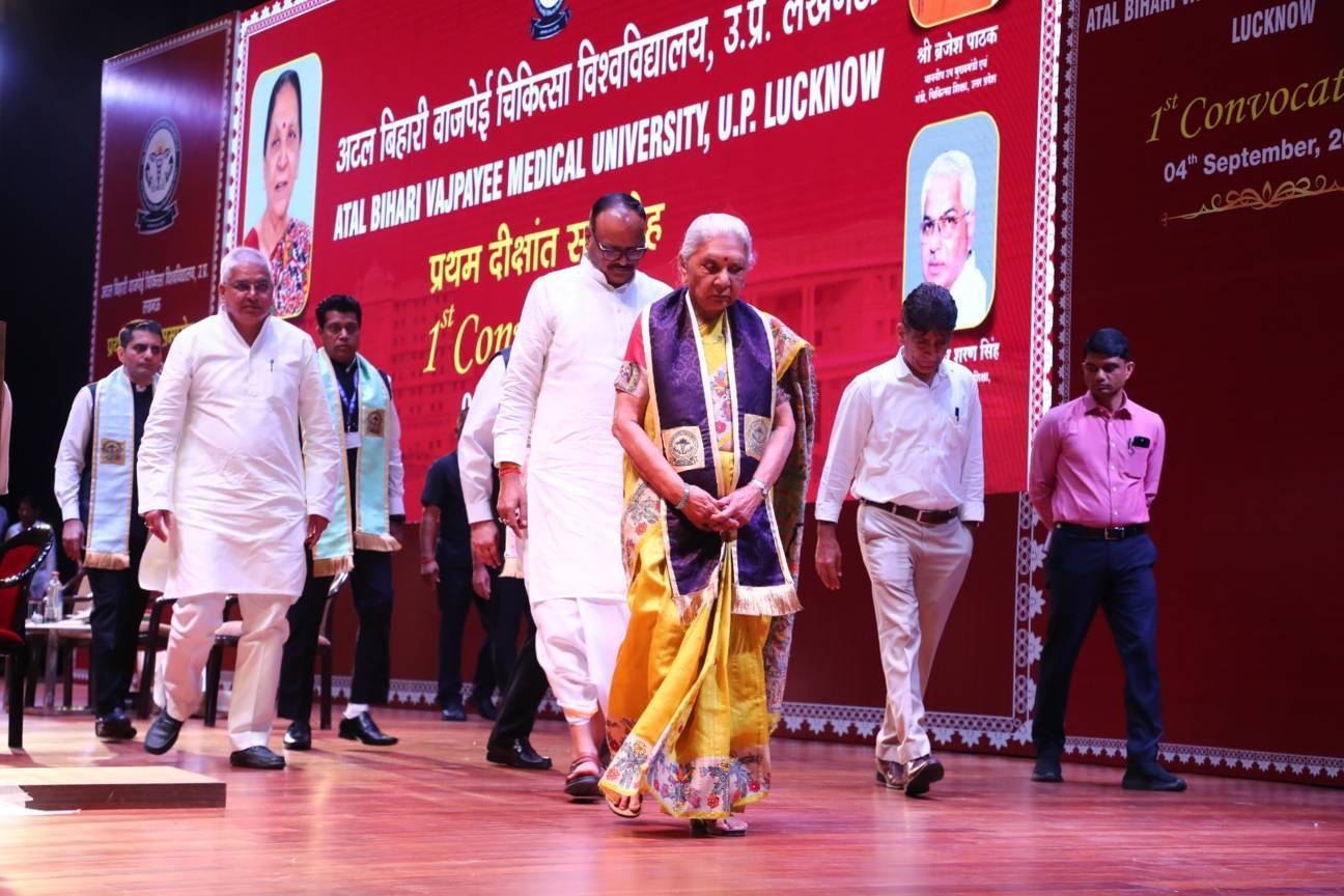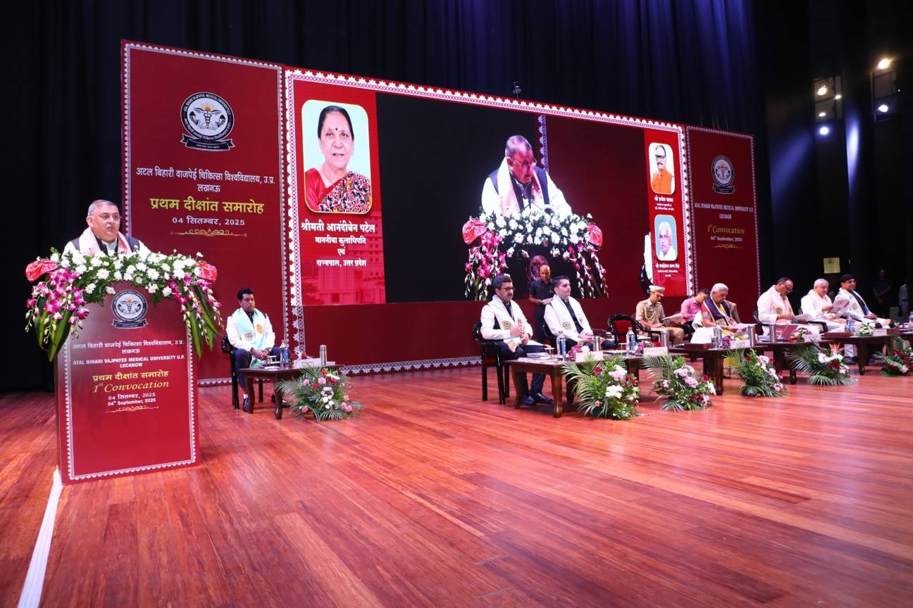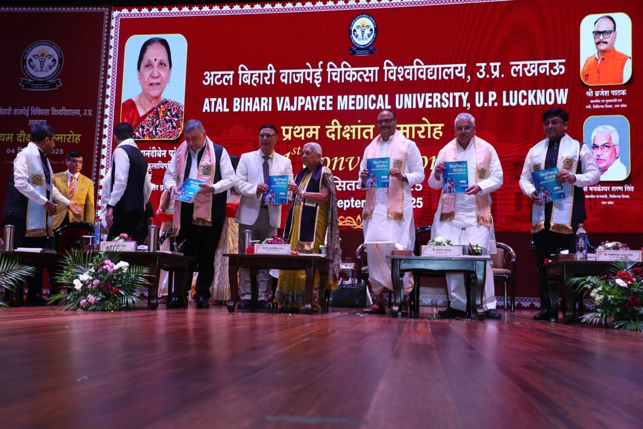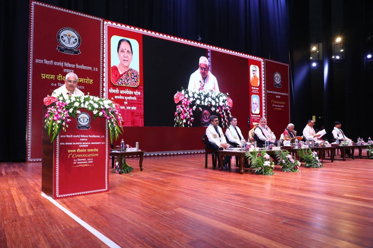 1st Convocation of Atal Bihari Medical University, UP, Lucknow, was held on 4th September, 2025 at the auditorium of University. The convocation was presided over and blessed by Hon'ble Chancellor and Governor of Uttar Pradesh, Smt. Anandiben Patel ji. Hon'ble Deputy Chief Minister and cabinet minister Medical Education Sri. Brajesh Pathak ji, was Chief Guest and State Minister, Medical Education Sri Mayankeshwar Sharan Singh was the Guest of Honour. 74 Gold and Silver medals and 8526 degrees were awarded to students of Nursing, Dental, Medical and Paramedical disciplines at the convocation.