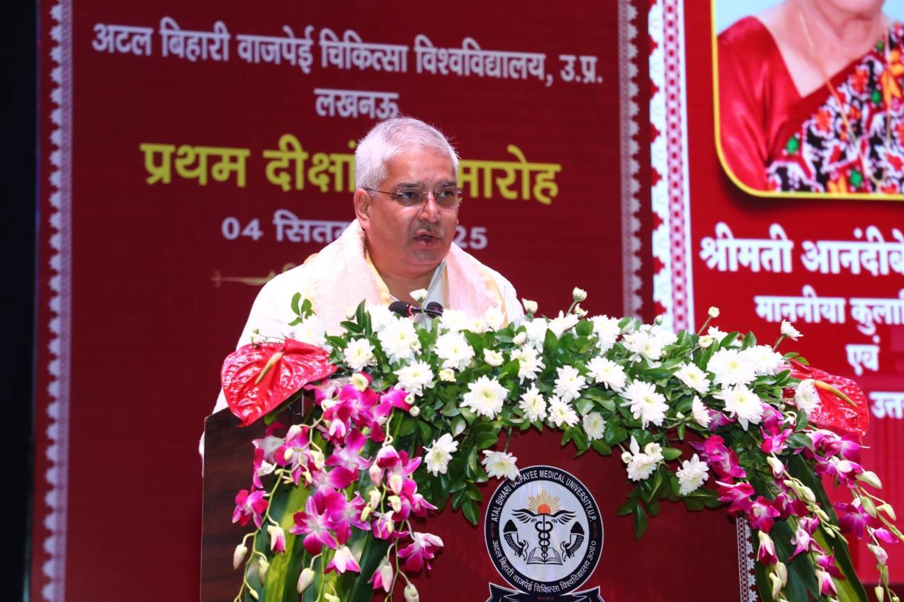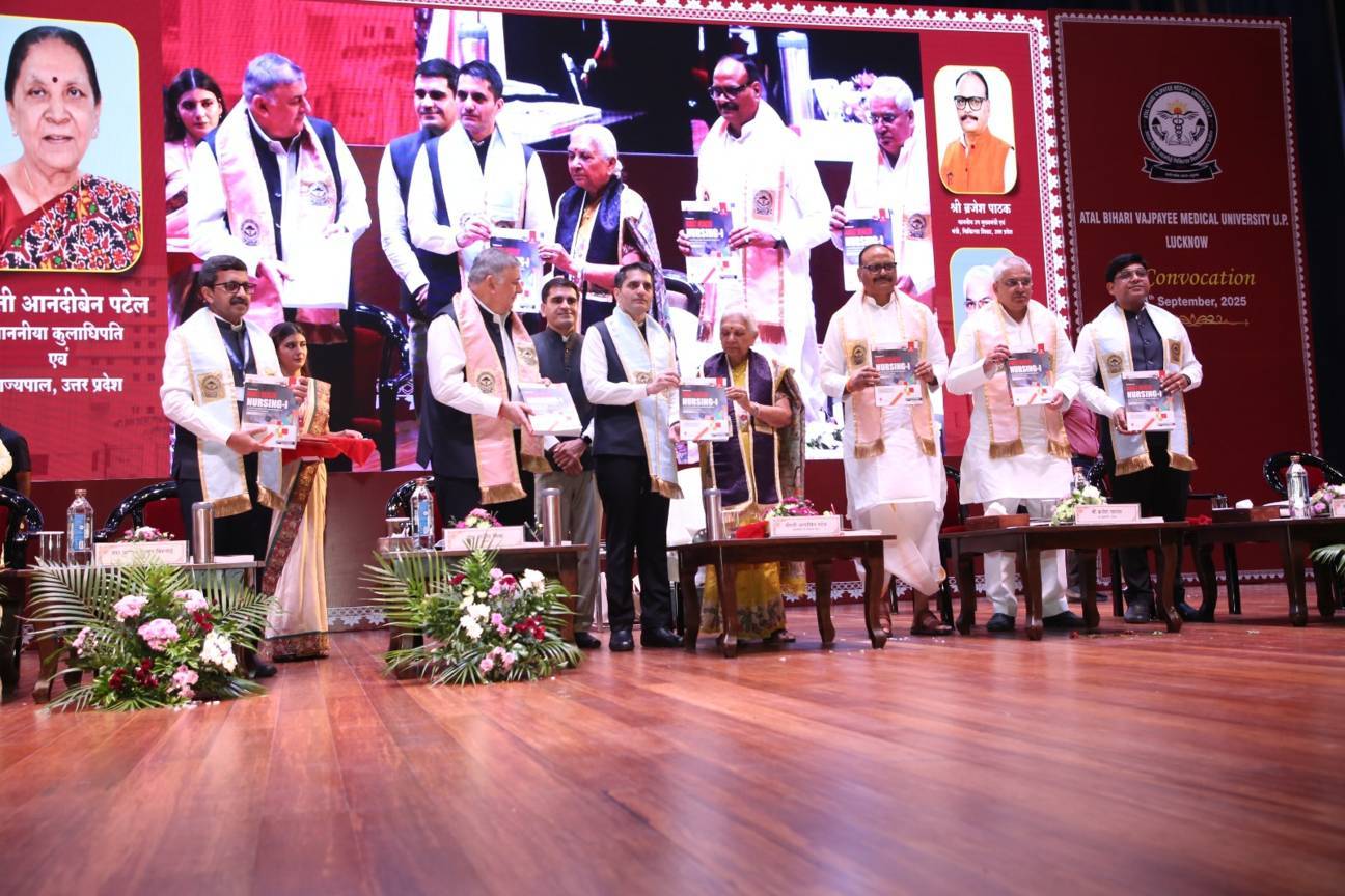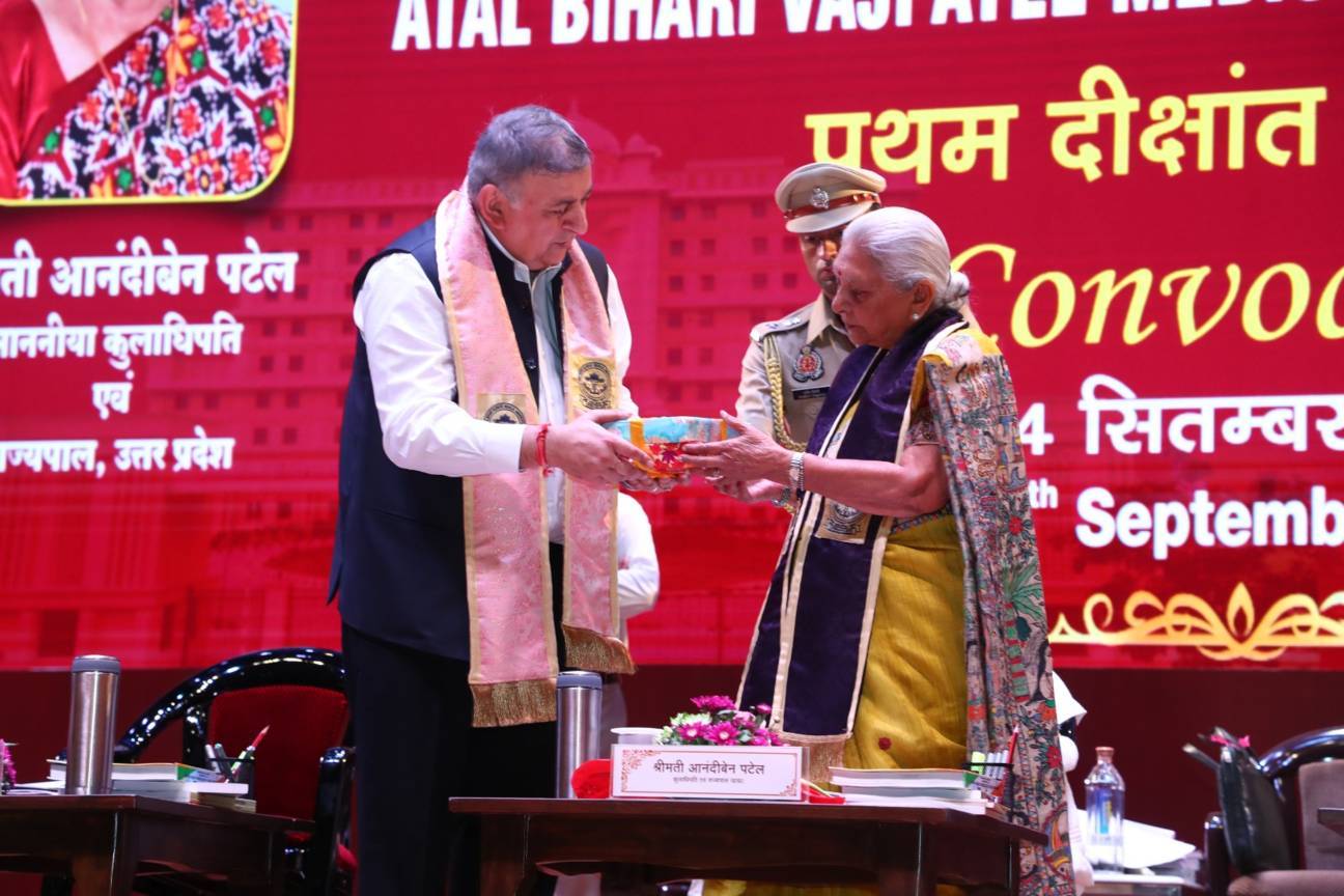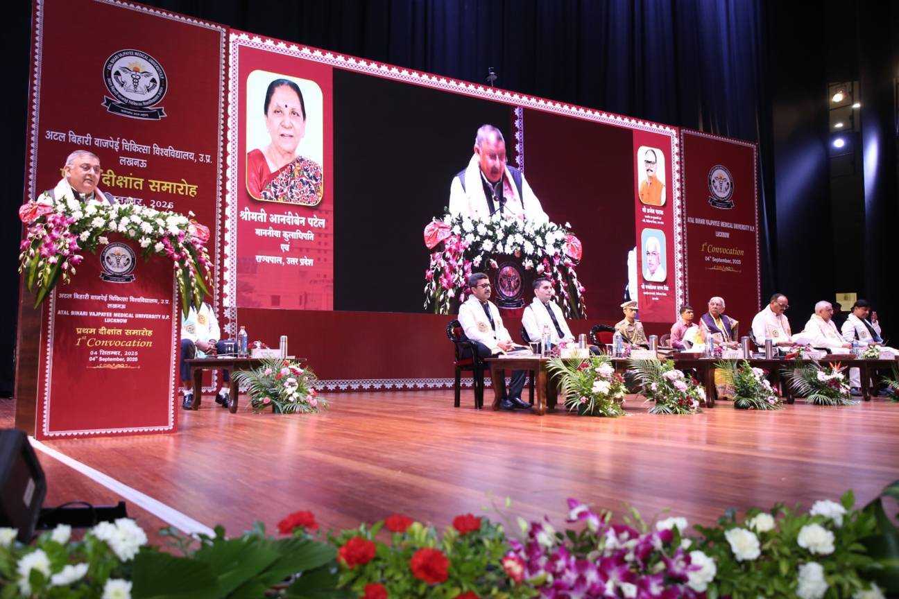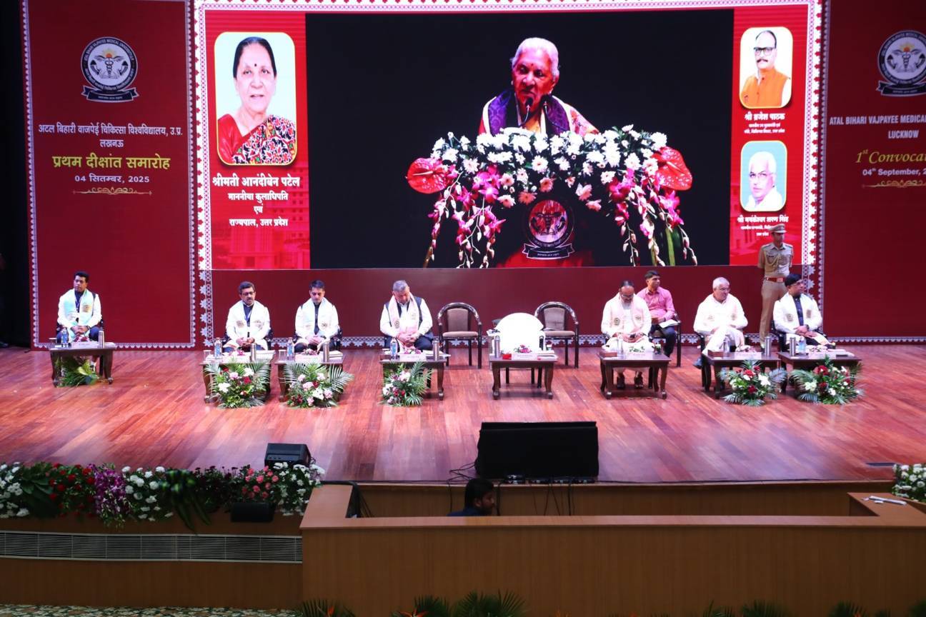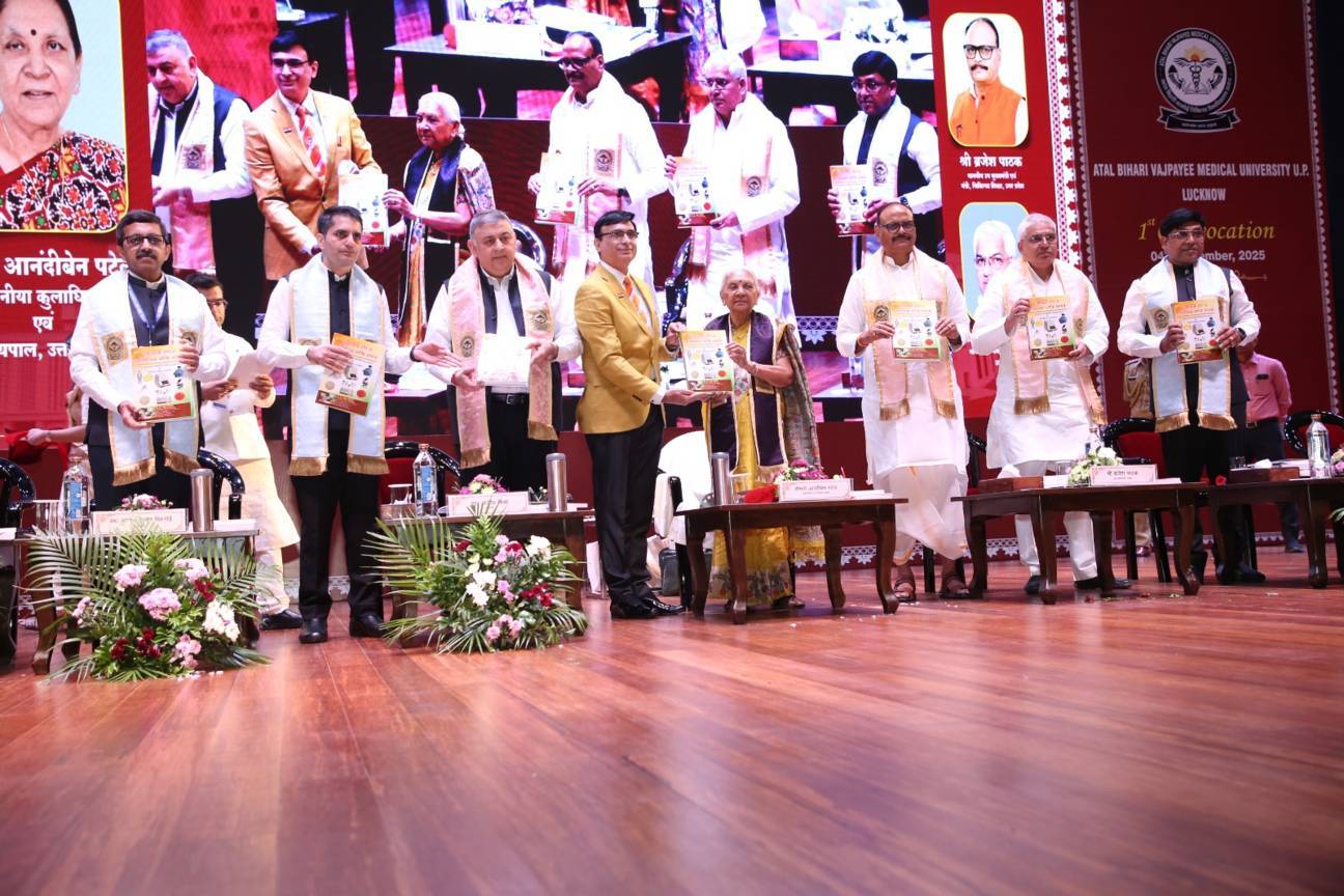 1st Convocation of Atal Bihari Medical University, UP, Lucknow, was held on 4th September, 2025 at the auditorium of University. The convocation was presided over and blessed by Hon'ble Chancellor and Governor of Uttar Pradesh, Smt. Anandiben Patel ji. Hon'ble Deputy Chief Minister and cabinet minister Medical Education Sri. Brajesh Pathak ji, was Chief Guest and State Minister, Medical Education Sri Mayankeshwar Sharan Singh was the Guest of Honour. 74 Gold and Silver medals and 8526 degrees were awarded to students of Nursing, Dental, Medical and Paramedical disciplines at the convocation.