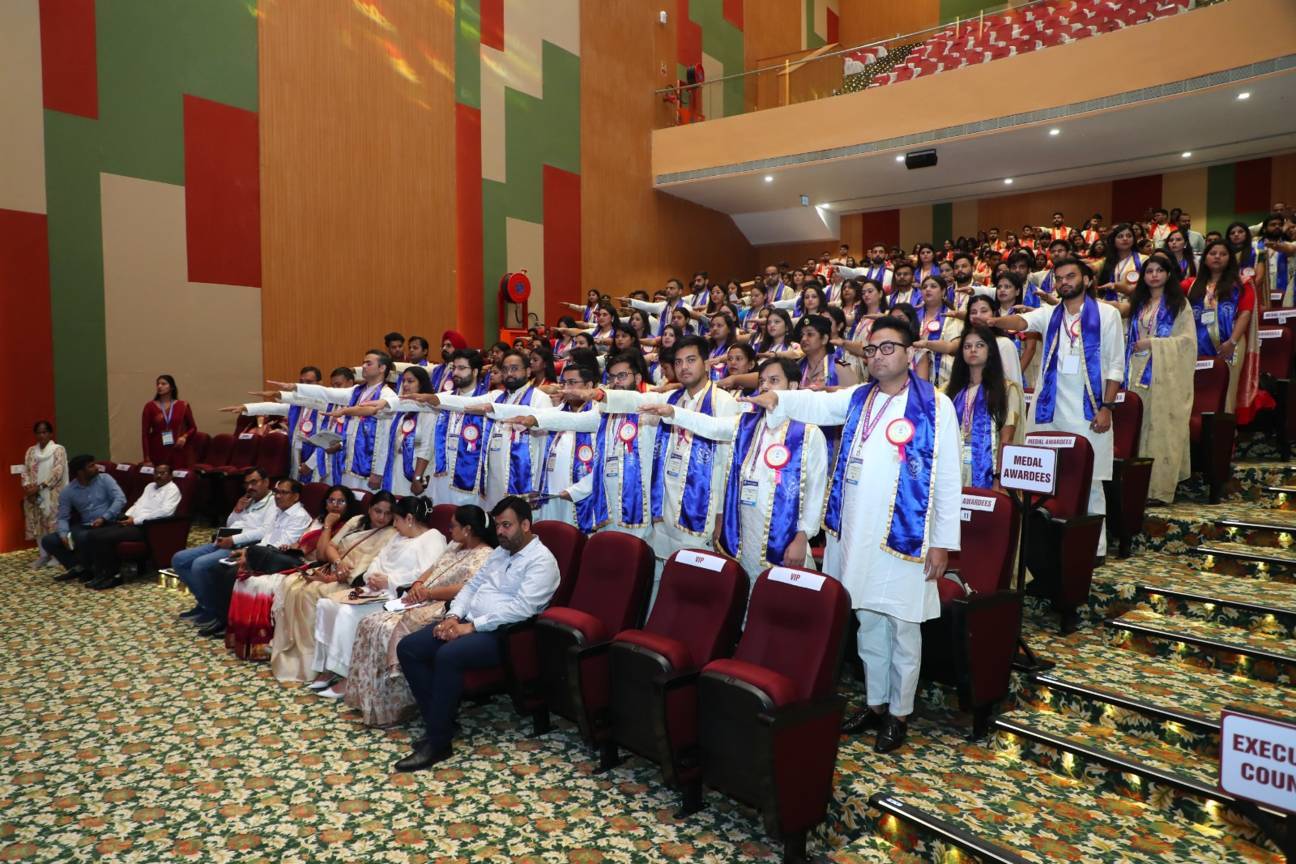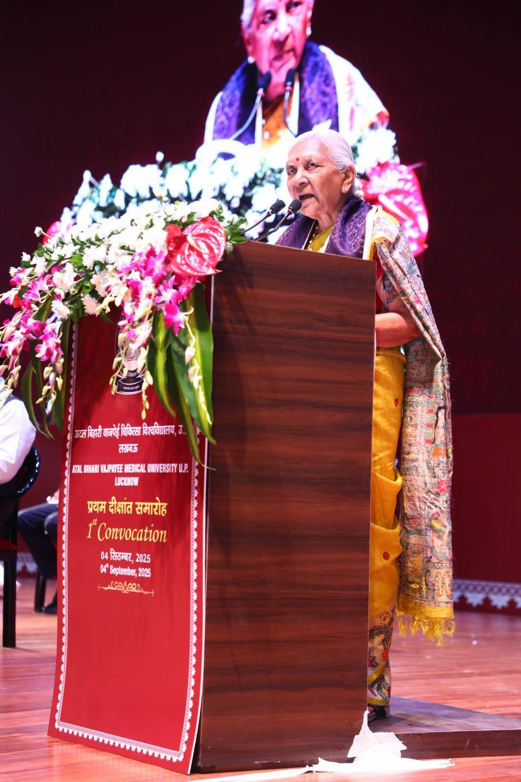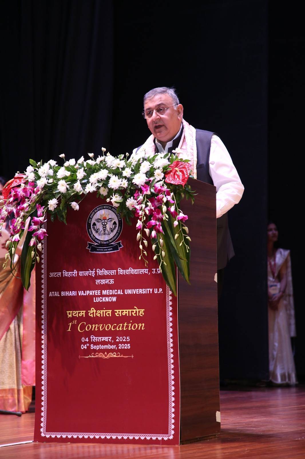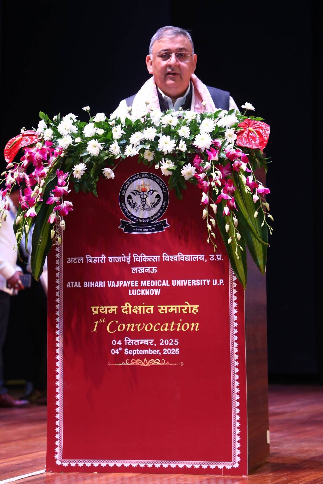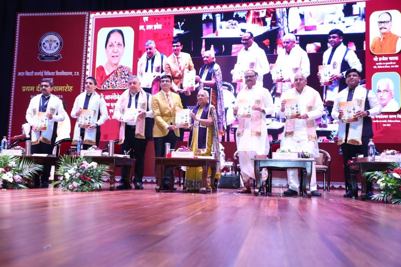1st Convocation of Atal Bihari Medical University, UP, Lucknow, was held on 4th September, 2025 at the auditorium of University. The convocation was presided over and blessed by Hon'ble Chancellor and Governor of Uttar Pradesh, Smt. Anandiben Patel ji. Hon'ble Deputy Chief Minister and cabinet minister Medical Education Sri. Brajesh Pathak ji, was Chief Guest and State Minister, Medical Education Sri Mayankeshwar Sharan Singh was the Guest of Honour. 74 Gold and Silver medals and 8526 degrees were awarded to students of Nursing, Dental, Medical and Paramedical disciplines at the convocation.